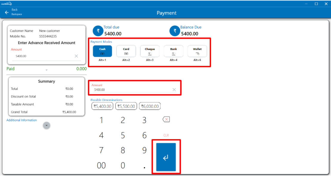 5. Payment page will open Finish the process by collecting payment and entering the appropriate payment mode