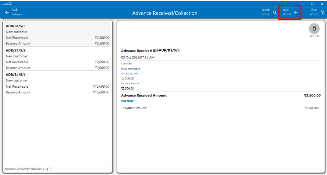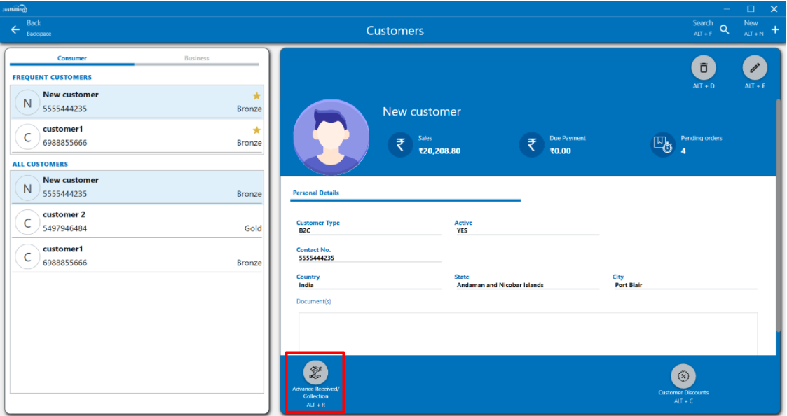 (Figure 7 - Advance Received or payment collection in JB Windows Application)