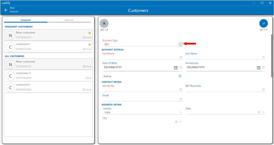 In this section you can see how to Add and Edit a Customer. This page is used to Add or Edit two different customer types like customer consumer and customer corporate.