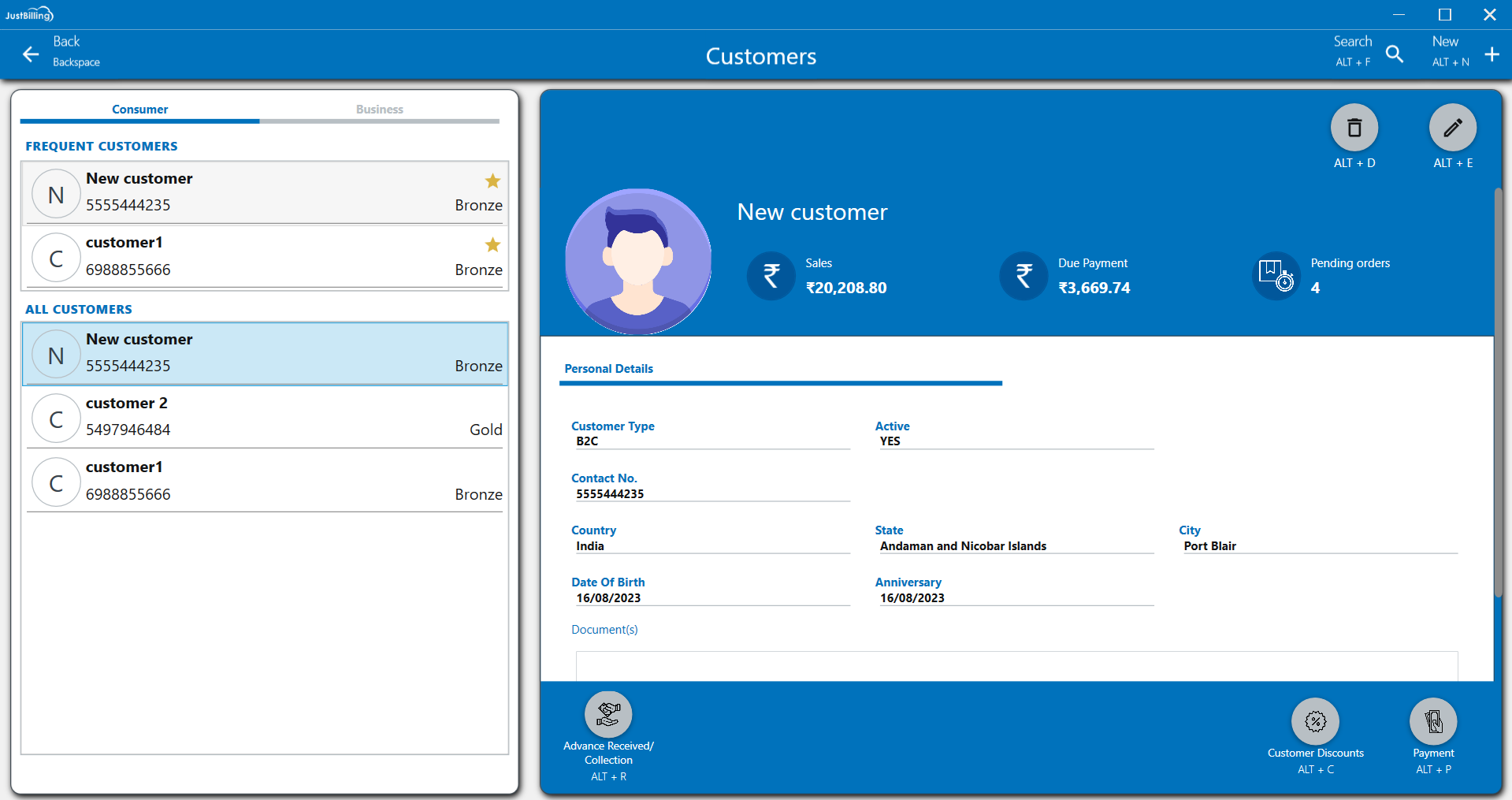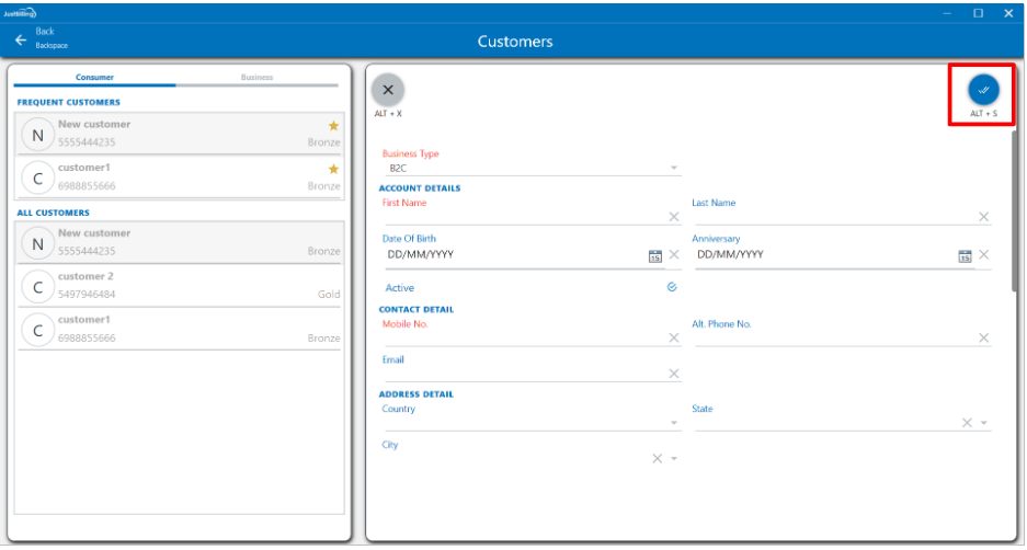 5. On Saving, the Customer details are updated and reflects in JB Windows application under discount rules page.