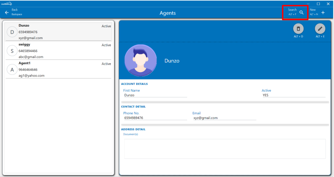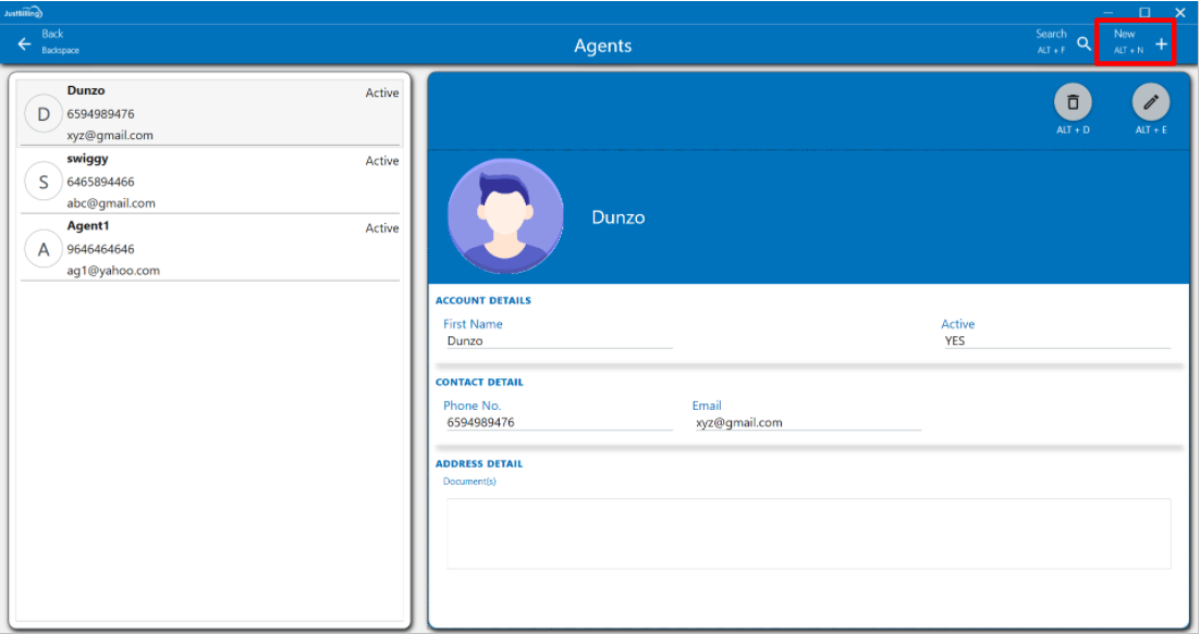 Note: Agents page added from Just billing application will get synced to JB cloud Back office by Auto Sync.