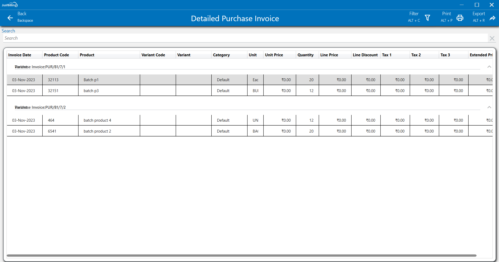 Detailed Purchase Invoice