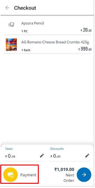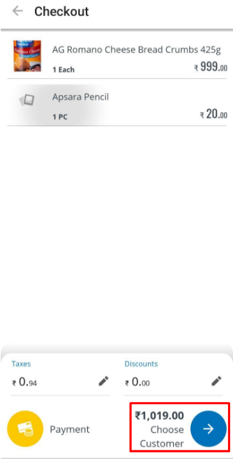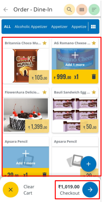 Once you have selected all the required products for the Dine-In order, click on the Proceed button. you will be directed to checkout screen, here select the customer and proceed.(see figure 4)
