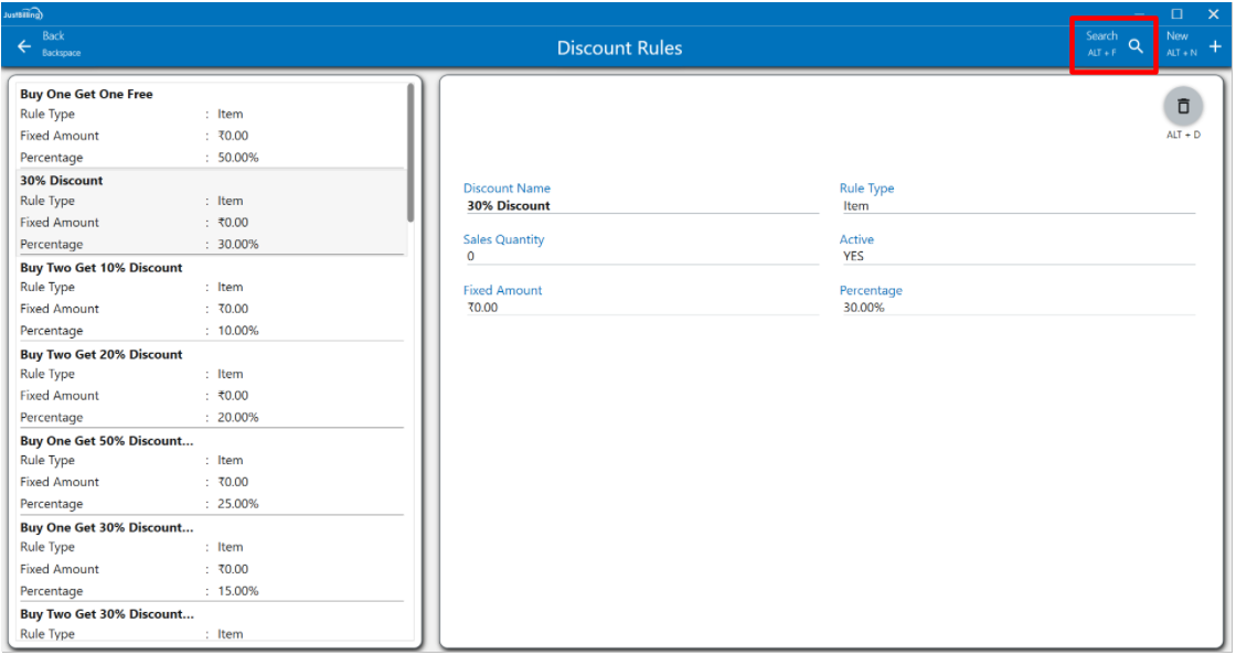9. On saving, the discount rule reflects in the JB Windows application under the discount rules page.
