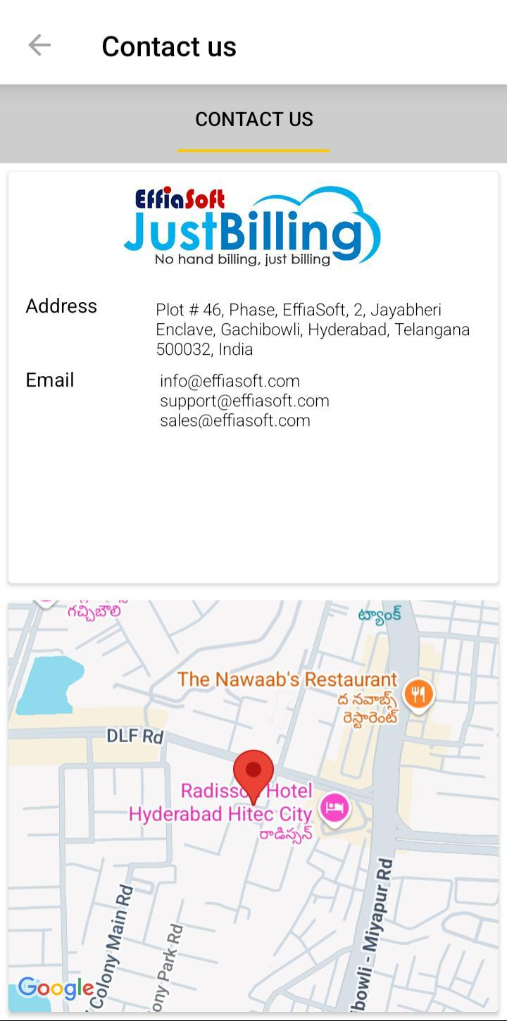 3. Contact Us : This page will let you take to find contact details like address, Email and contact number. ( From this screen you can get contact us information where you can directly contact us with the available information in the page.)