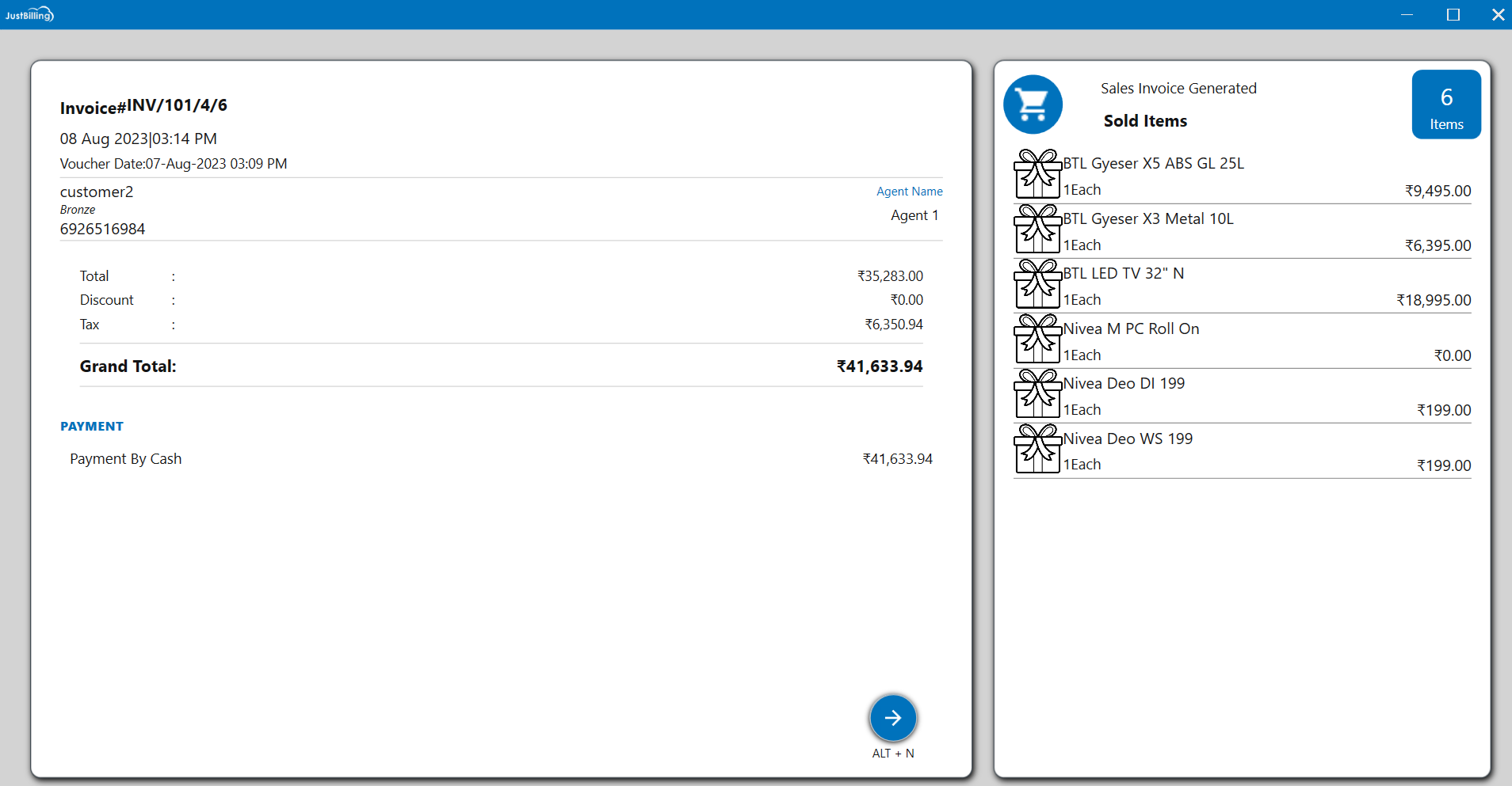 After payment is done, the system redirects you to the invoice and sold items details screen as shown in below screen.