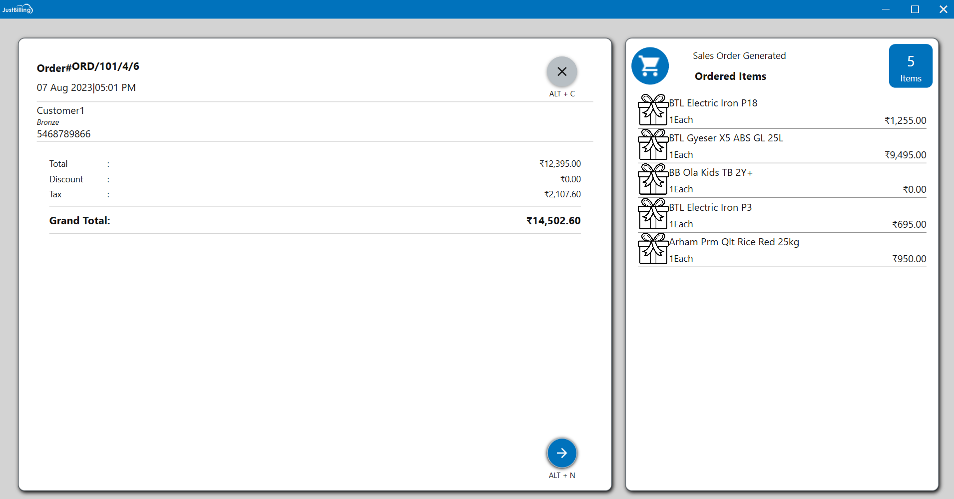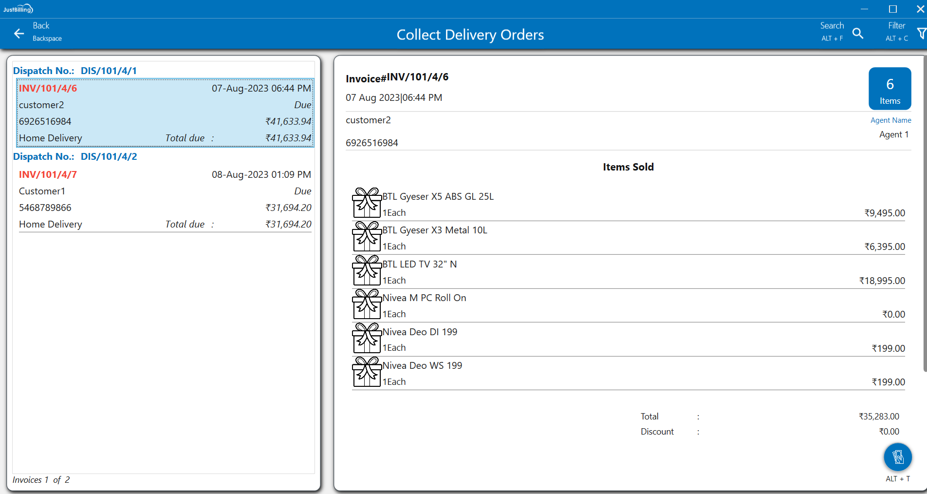 or enter ALT+D to collect the payment after the order gets delivered by the Agent.