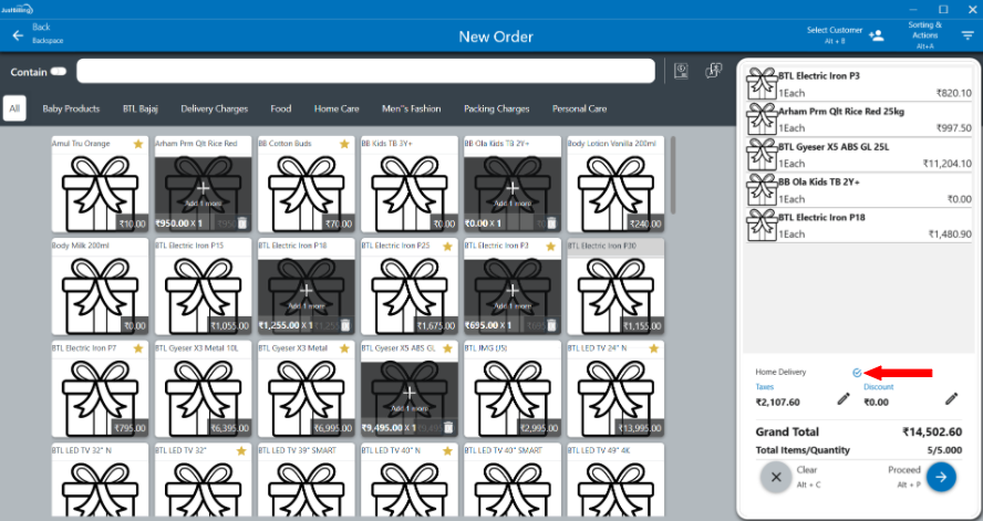 To assign the delivery agent for home delivery click on cancel button or Enter ALT+N or Proceed button to add new home delivery.