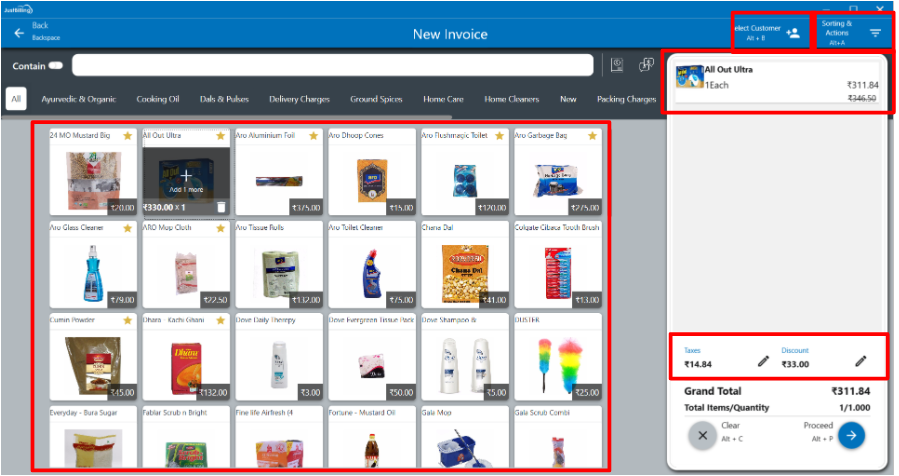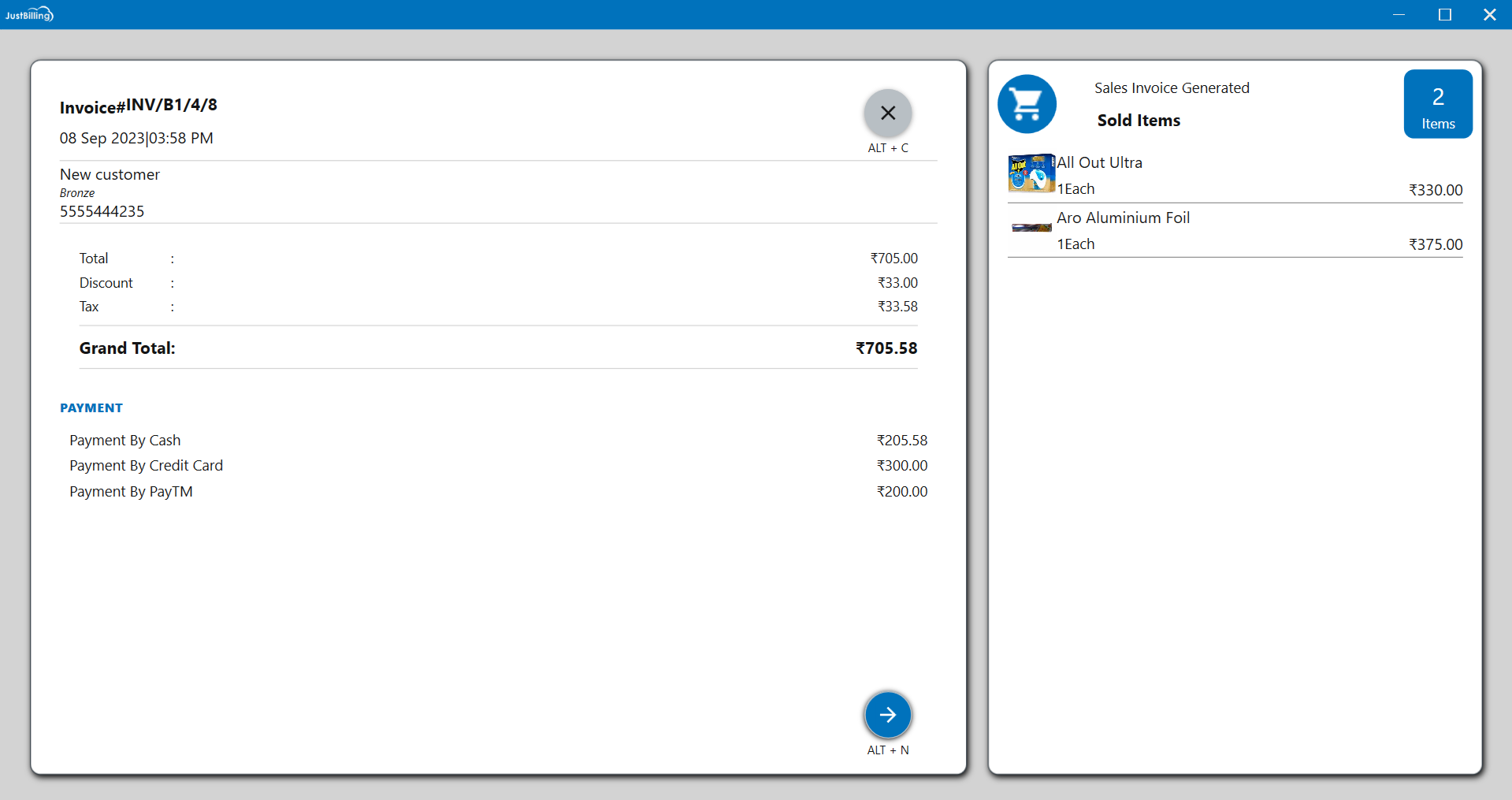 Note : Detailed Explanation of Billing screen and Payment Modes are available in Billing screen and Payment pages respectively