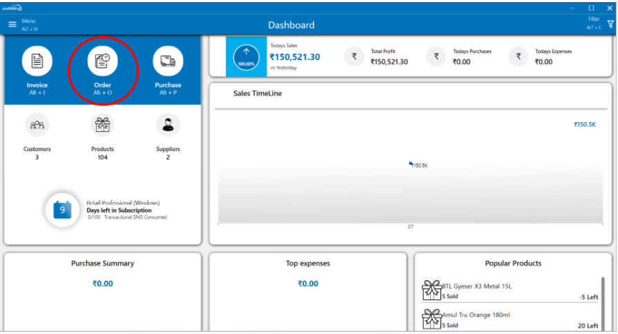 - Navigate the screen to Orders from Transaction > Orders or directly from Dashboard > Orders