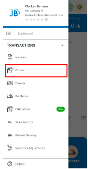 from top left and navigate to Orders screen, you can generate orders for the products/services you sell.