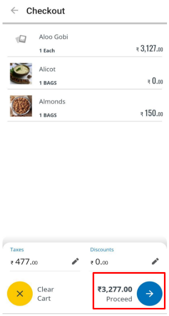 When you tap on Proceed, it opens the Payment screen where you can enter customer details. However, only if Capture customer details while billing is in on mode, this screen will appear. If Capture customer details while billing is turned off, the payment screen where you can enter customer details or select a customer will not appear (to know how you can turn on or off Capture customer details while billing, please refer App Settings).