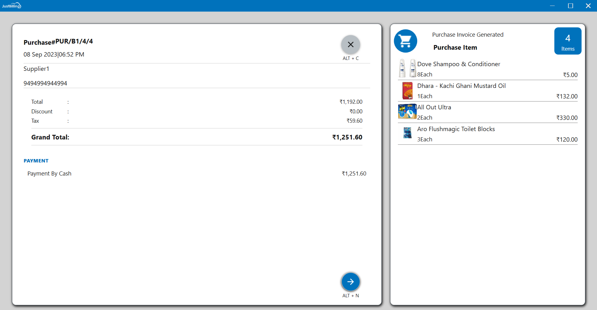 Note : Detailed Explanation of Billing screen and Payment Modes are available in Billing screen and Payment pages respectively