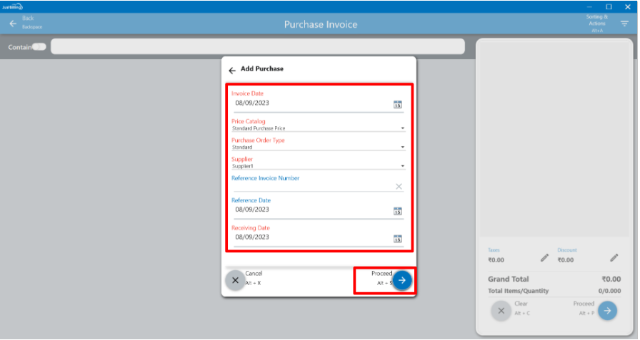 - Navigate to Menu > Transaction > Purchase Invoices (or) click on purchase from dashboard