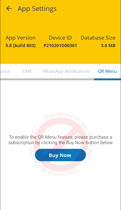 QR Menu : From this User need to purchase the QR menu by selecting Buy Now.