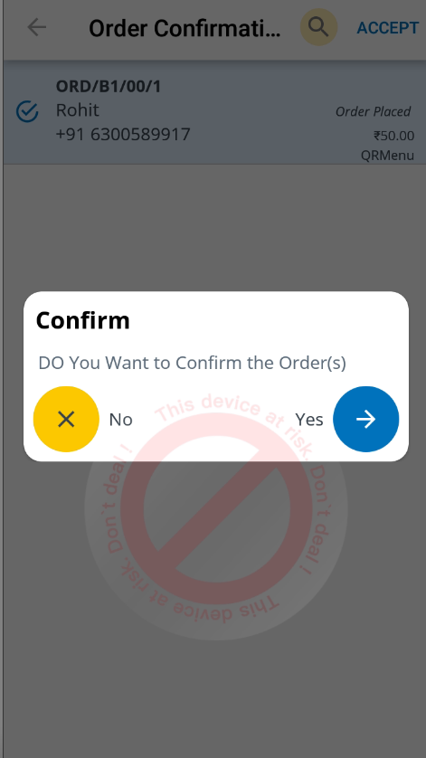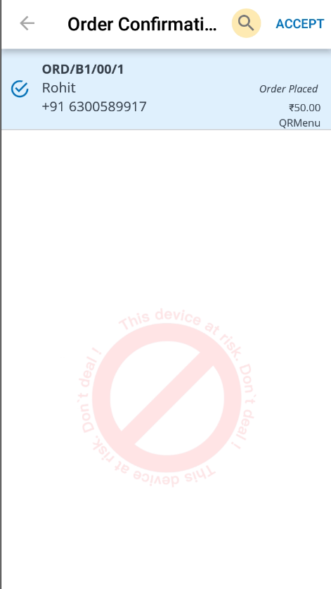 On scanning the QR code user can view the order items and proceed for the order confirmation and pay as per the configuration.