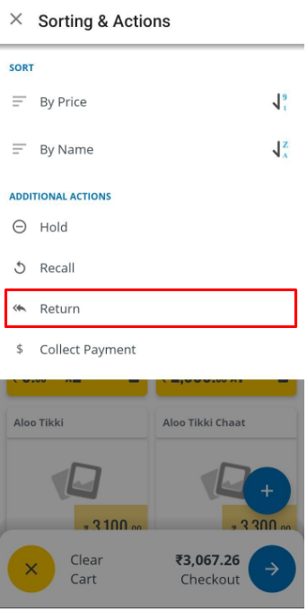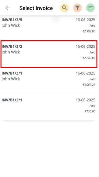 - Tap on a bill. This will redirect you to the billing screen. Only the products specific to the selected bill will appear in the cart and product pane.(see figure 3)