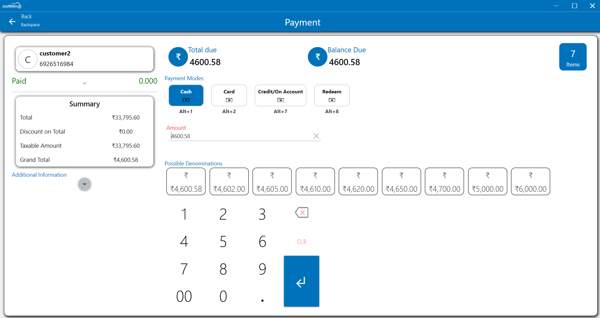 Validate/edit the discount recovered amount and click Cash button or enter ALT+C to refund the amount to the customer by cash.