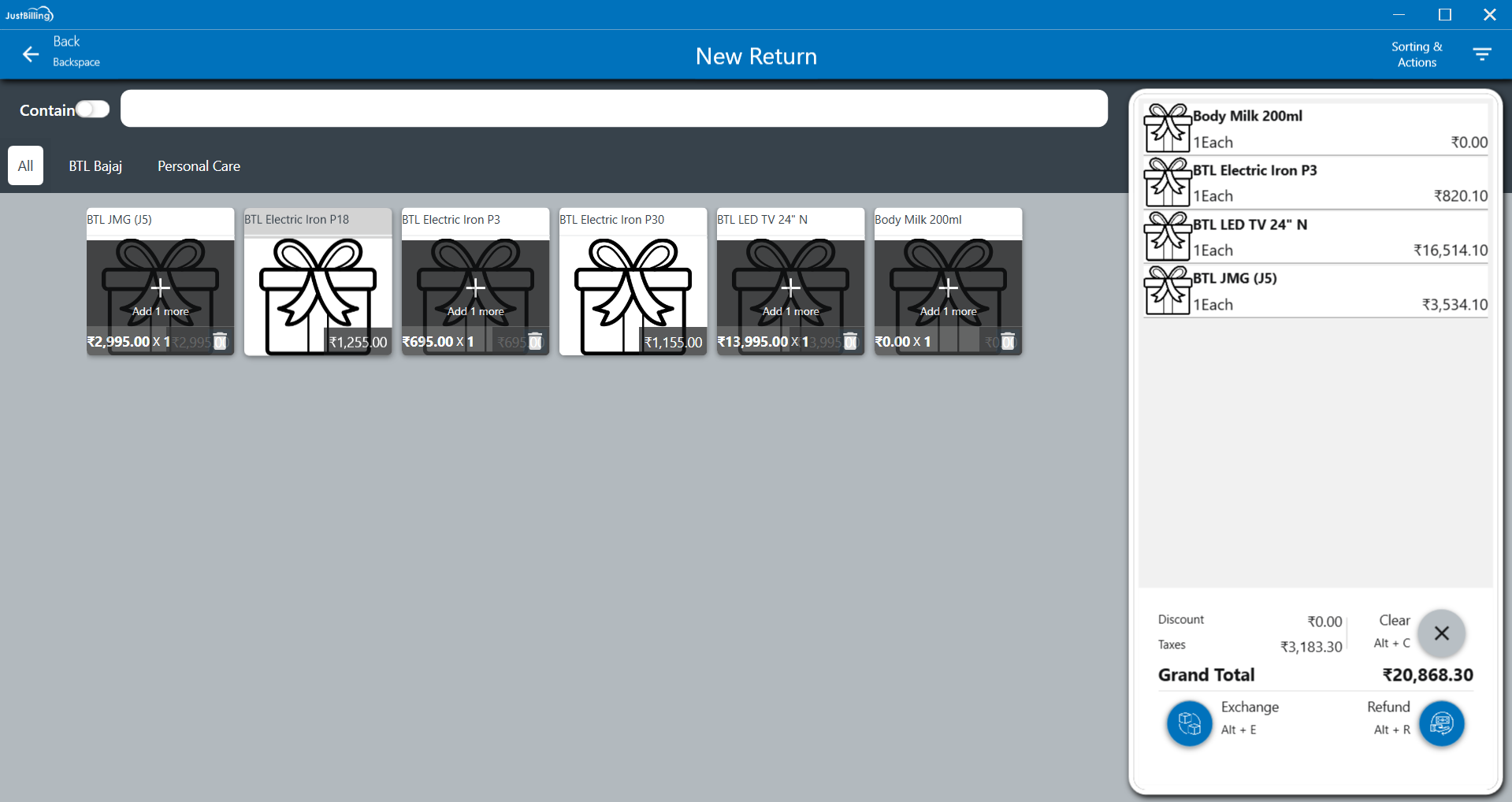 For exchange, customer can select identical product/different product depending upon their choice but Exchange Amount should be greater than or equal to Invoice Amount /Paid Amount. Only then, you will be redirected to billing screen.