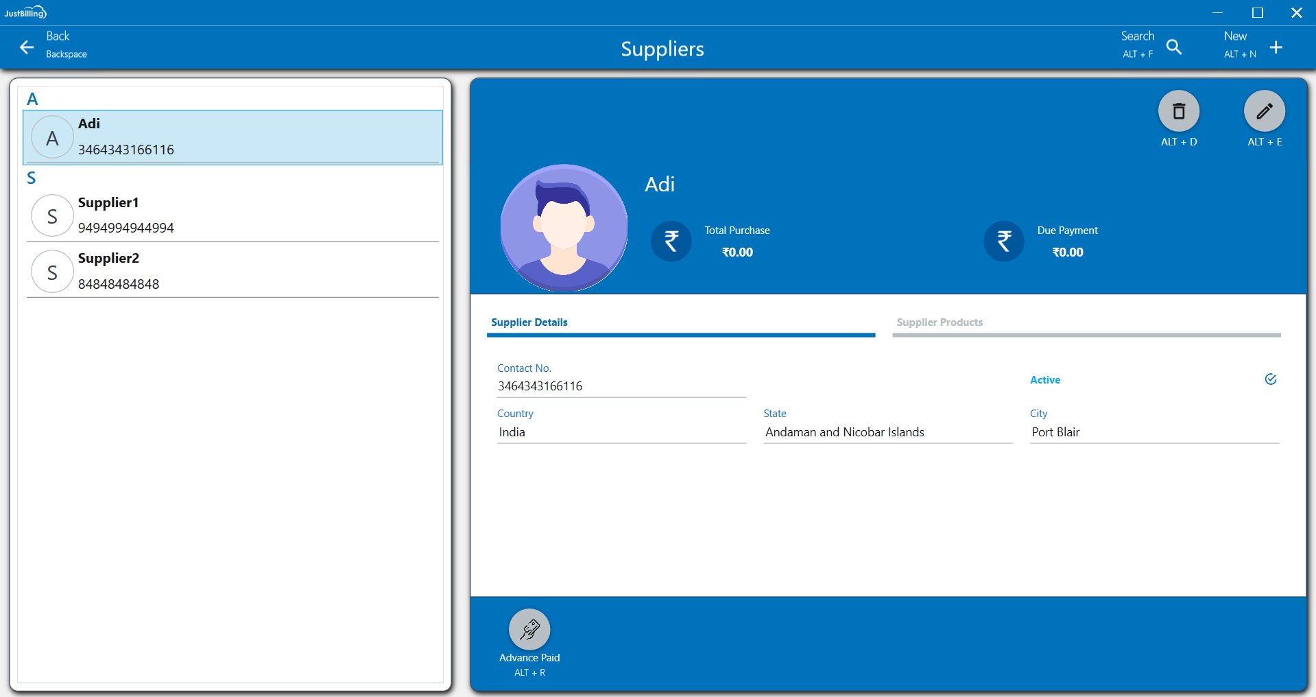 Note: Suppliers page added from Just billing application will get synced to JB cloud Back office by Auto Sync.