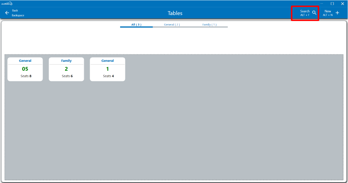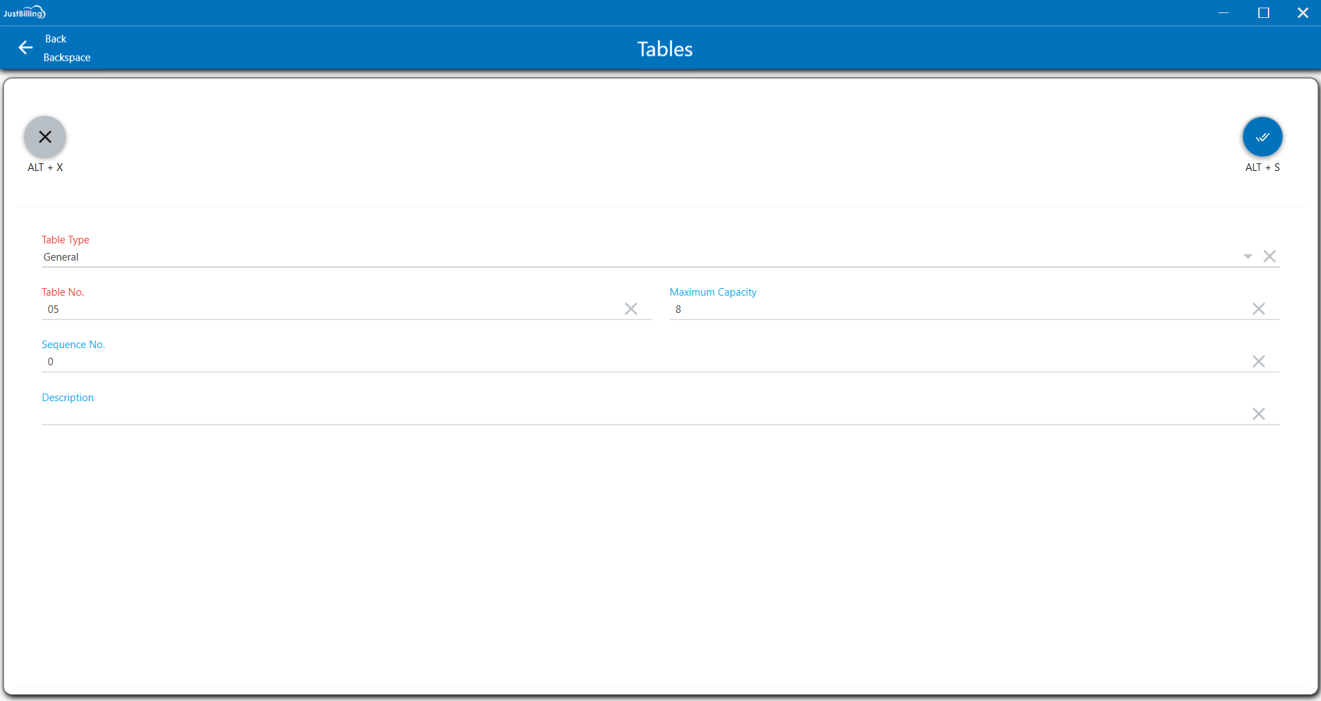 Note: Tables page added from Just billing application will get synced to JB cloud Back office by Auto Sync.