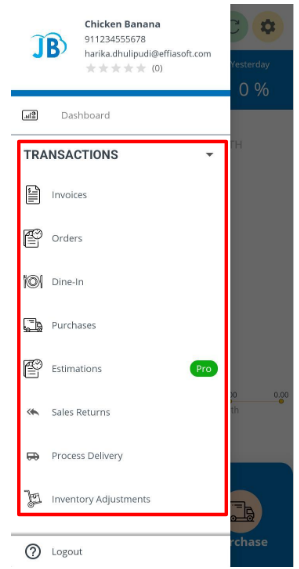 Transaction can be accessed from Menu