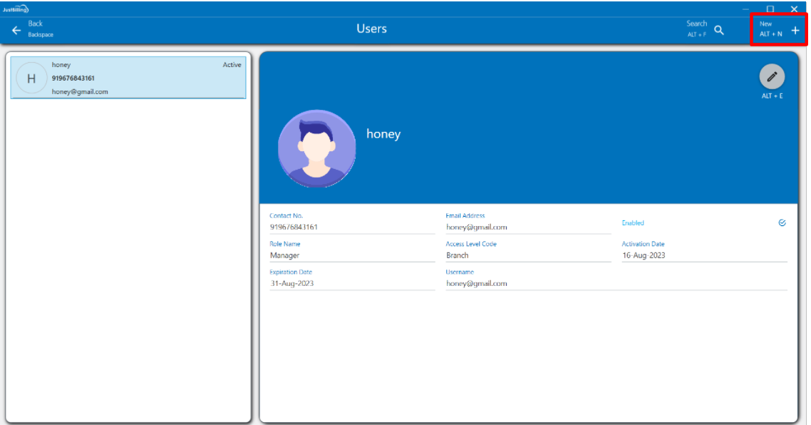 To create a new User, you need to log into Just Billing Application in your desktop.