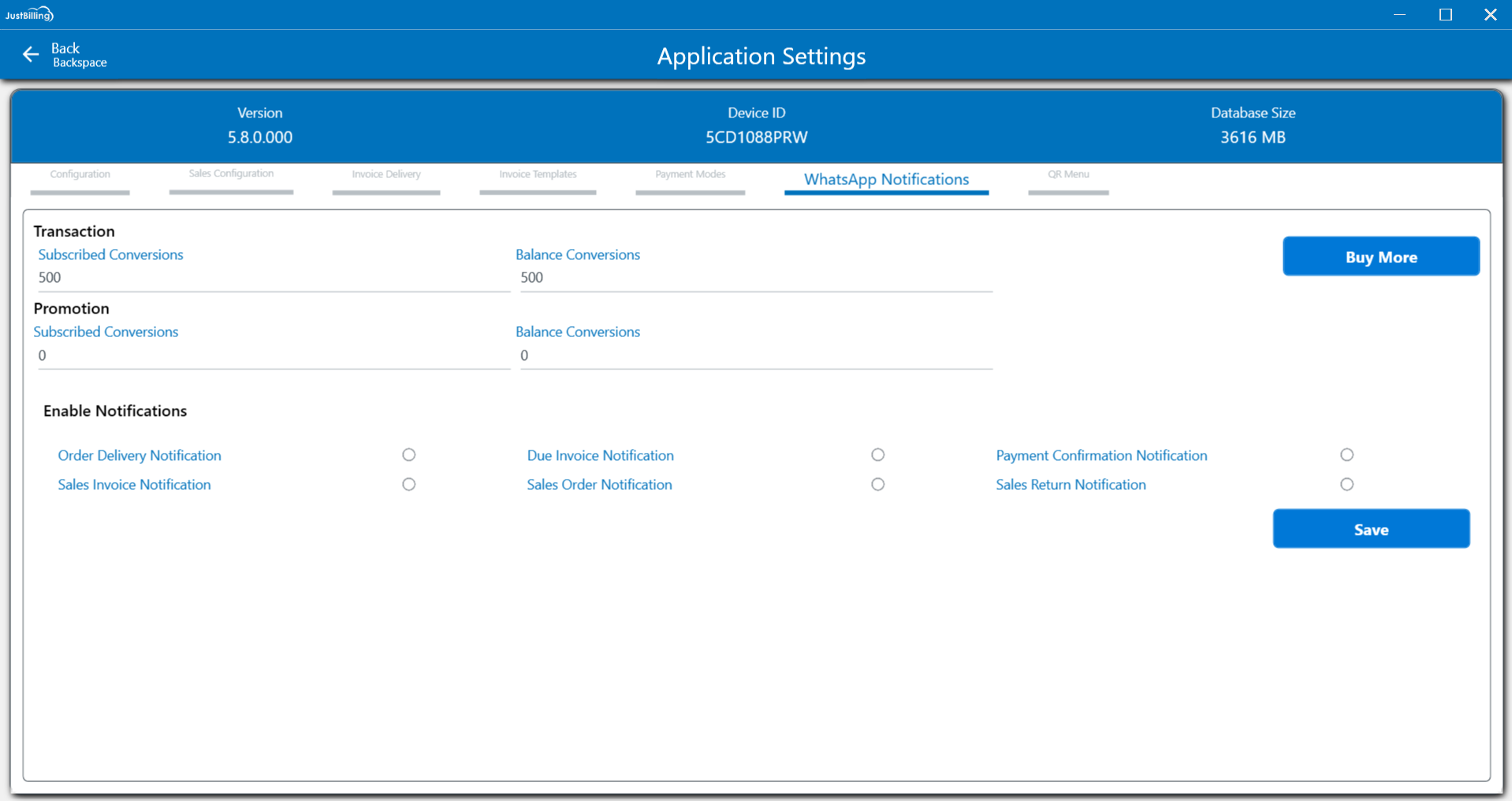 From the above screenshot on selecting Buy More system will redirect to the payment options and redirect to the Payment gateway and on selecting below notifucations to enable and select save system will displayed those notifucations which are configured.