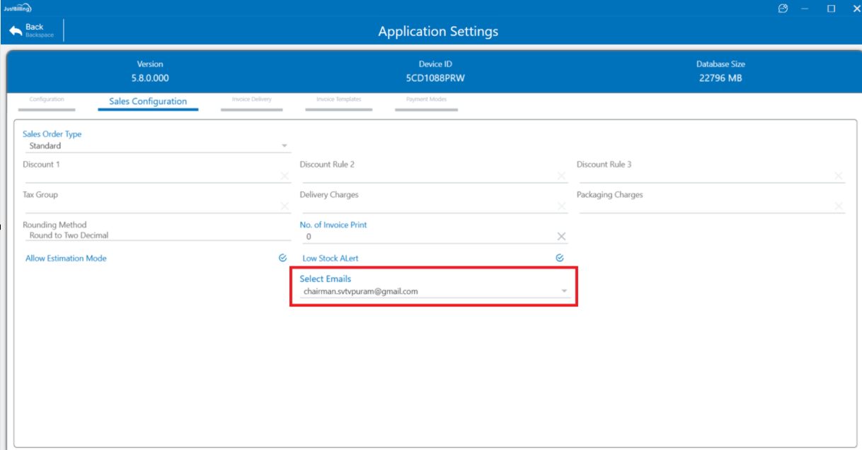 Once you select Invoice delivery mode then save, upon saving setting is been configured with Just Billing Application.