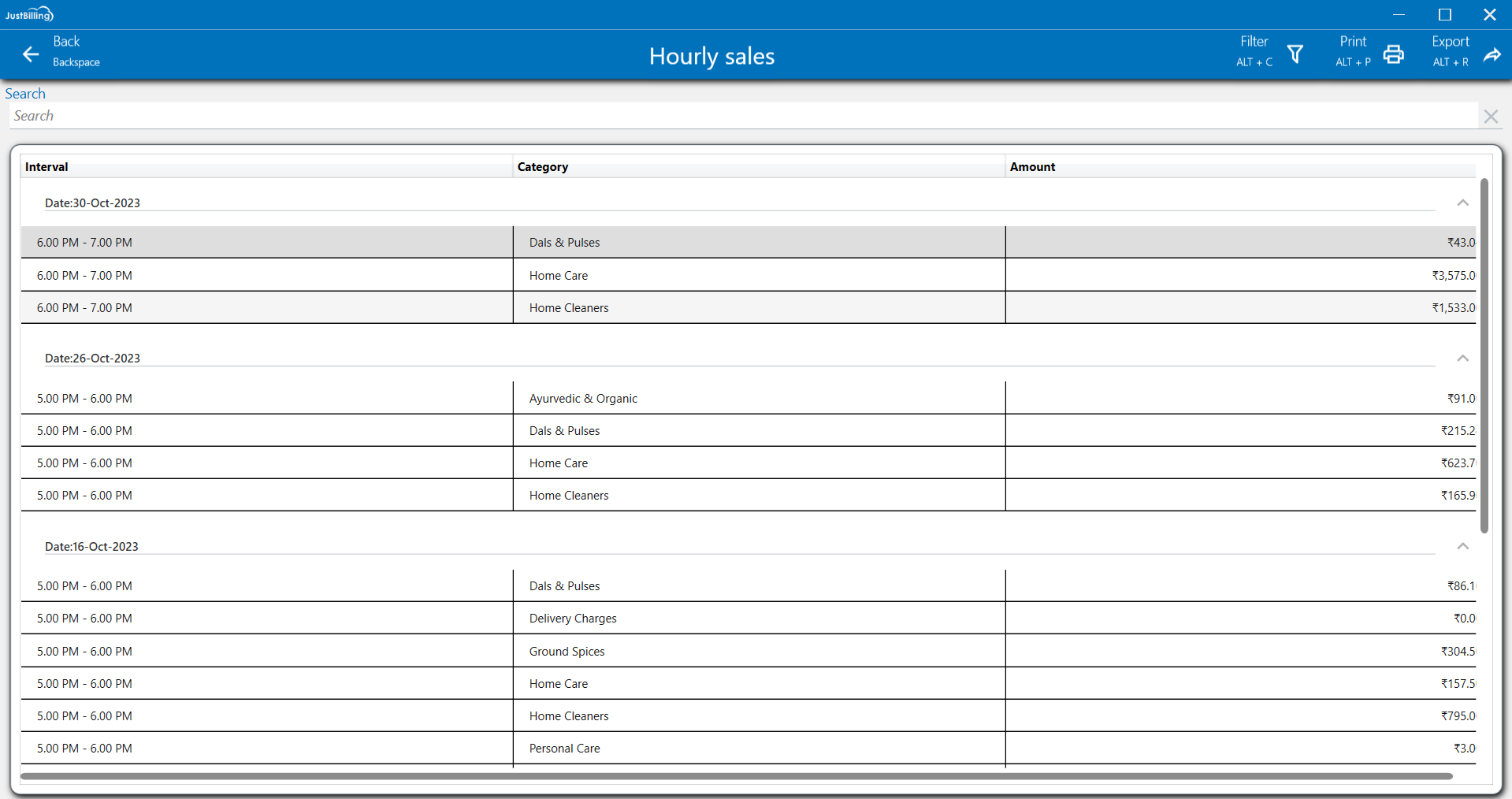 This report enables businesses to identify peak and low-performing hours to optimize staffing and sales strategies.
