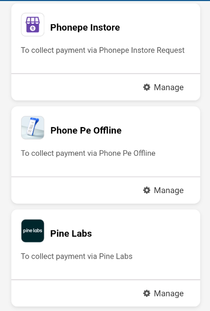 The Integrations module allows JustBilling users to connect with various third-party platforms for payments, ecommerce operations, delivery routing, and customer communication. Each integration can be configured individually based on the business requirement. The Integrations dashboard displays all available connectors along with a short description and a Manage button for configuration.
