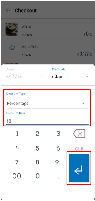 c) To add discount on the total bill amount, tap on Discount. This will open the Select Discount window (see figure 6A & 6B).