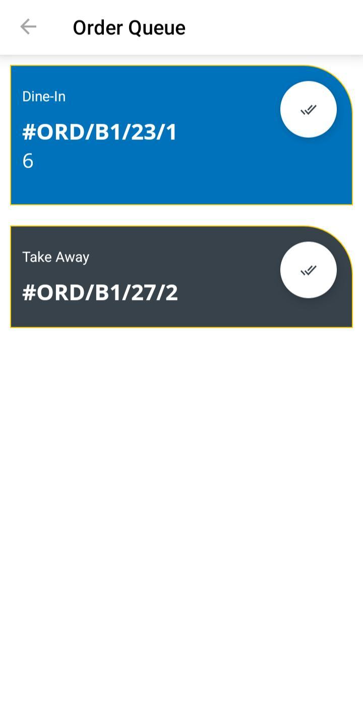 Once an order is marked as Completed on the KOT (Kitchen Order Ticket) screen, it will appear in the Customer Order Queue screen for tracking and delivery.