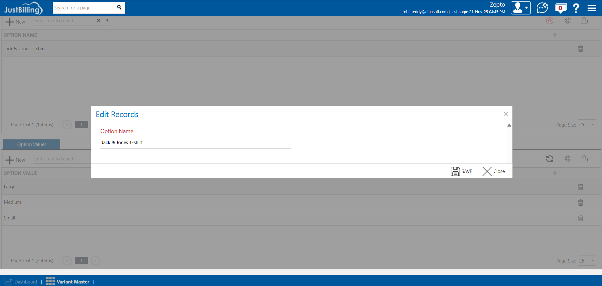 - Enable/Disable variant values using the toggle in Active field (Y/N).