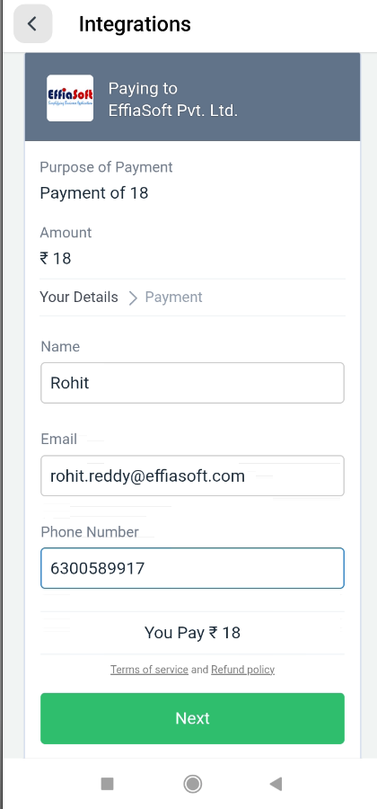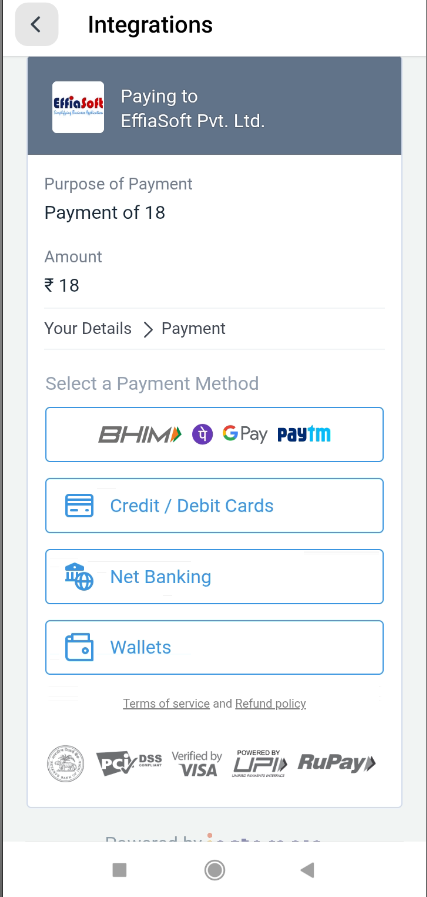 - Merchant: EffiaSoft Pvt. Ltd.