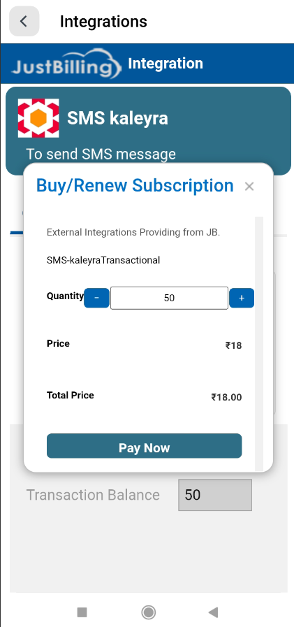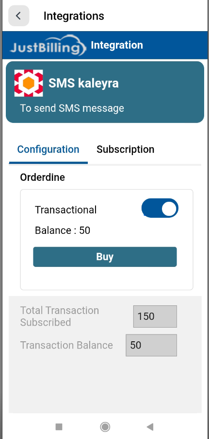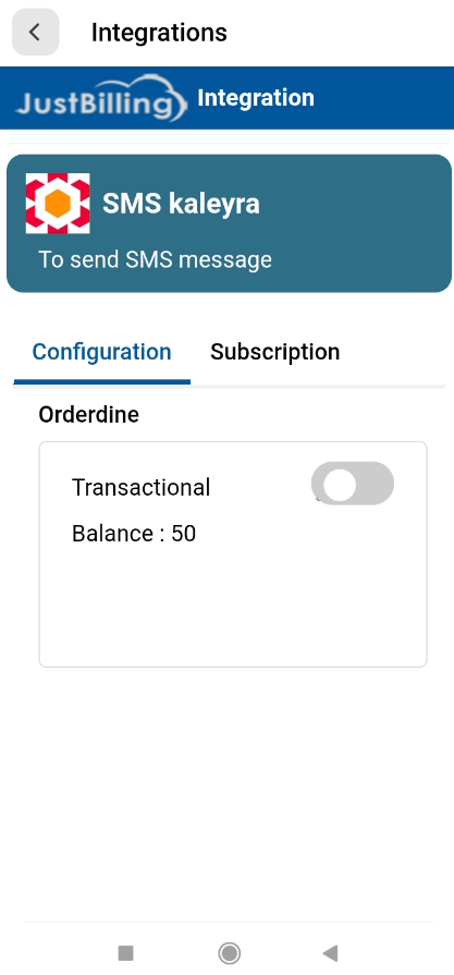 The SMS Kaleyra integration allows JustBilling users to send transactional SMS notifications such as order confirmations, OTPs, delivery updates, and other customer messages directly from the POS system.