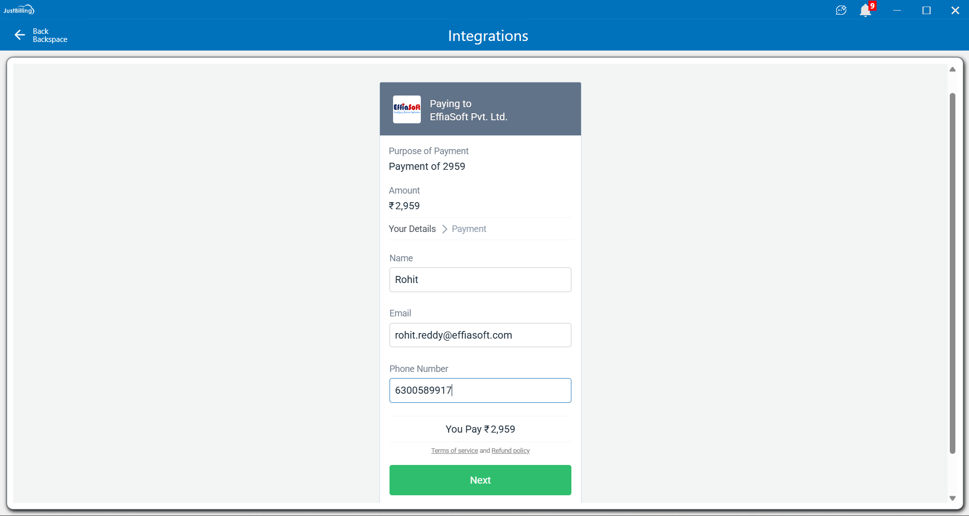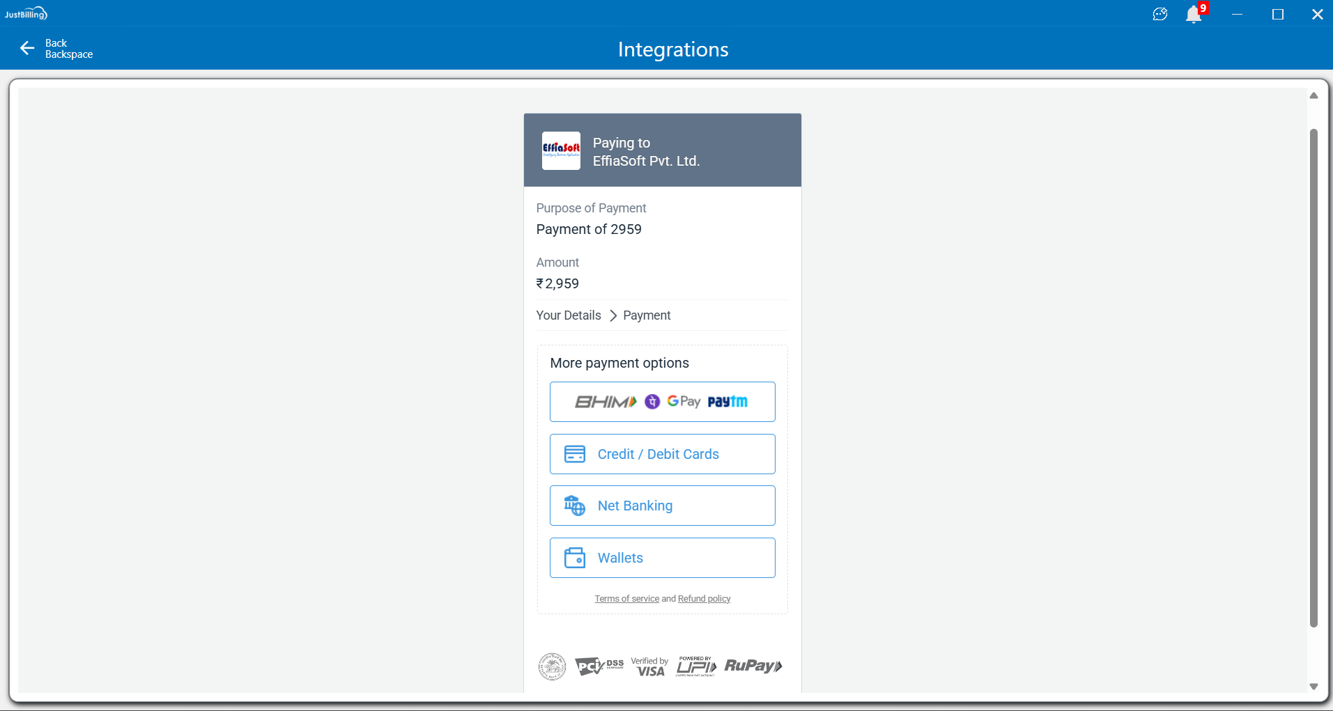 - Amount to pay (e.g., ₹2,959)