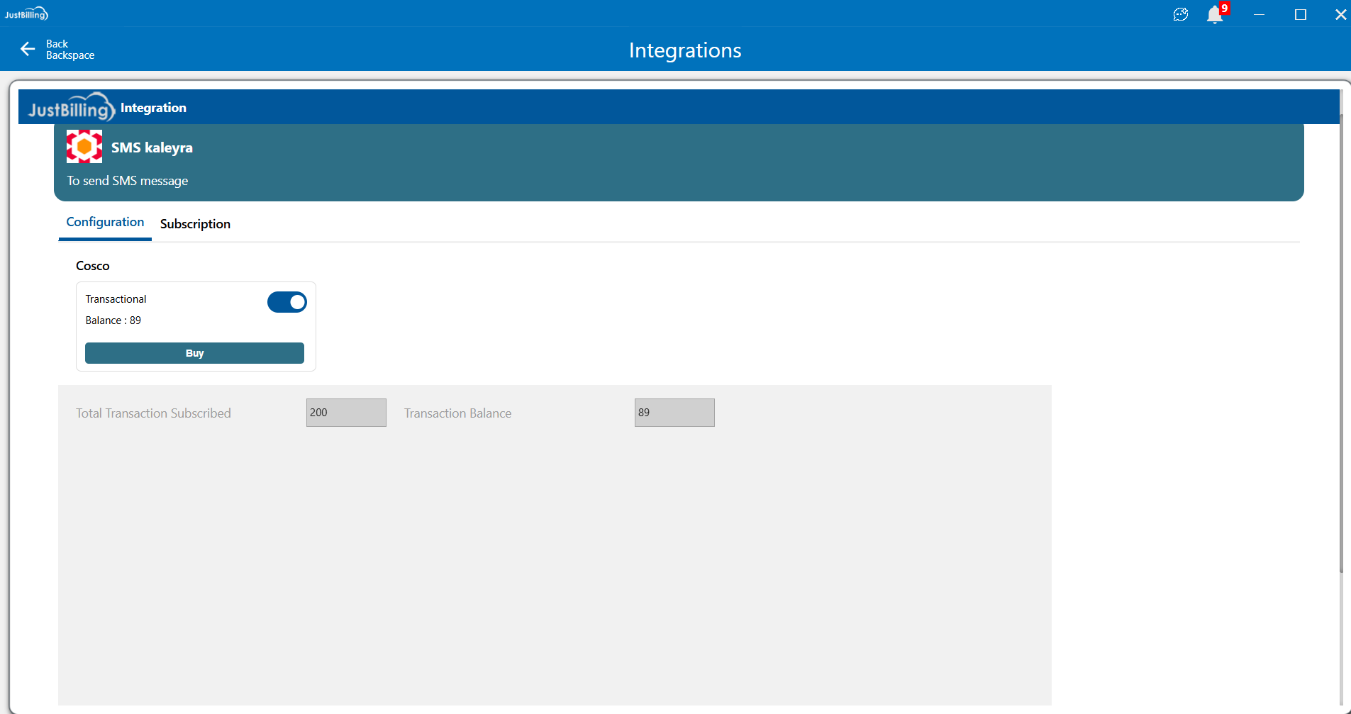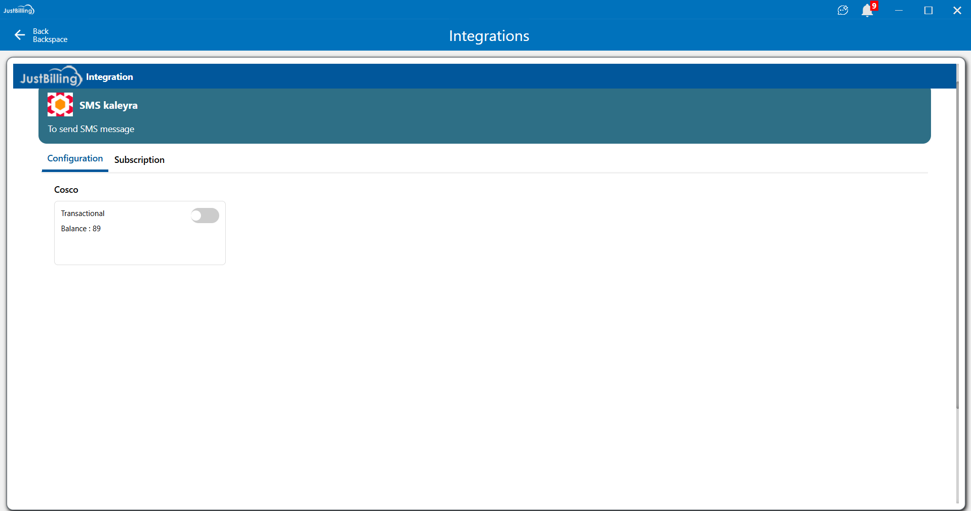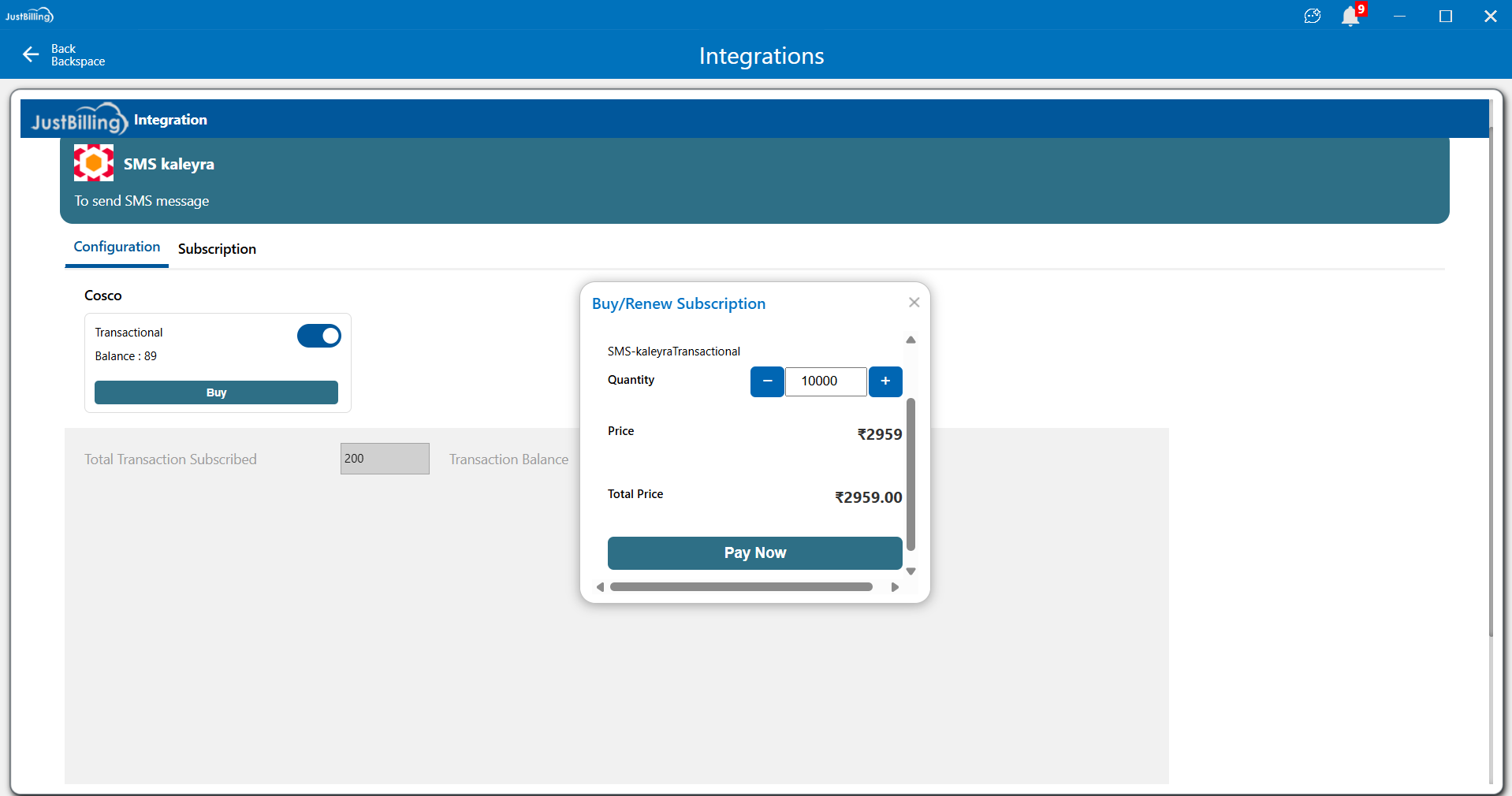 The SMS Kaleyra integration allows JustBilling users to send transactional SMS notifications such as order confirmations, OTPs, delivery updates, and other customer messages directly from the POS system.