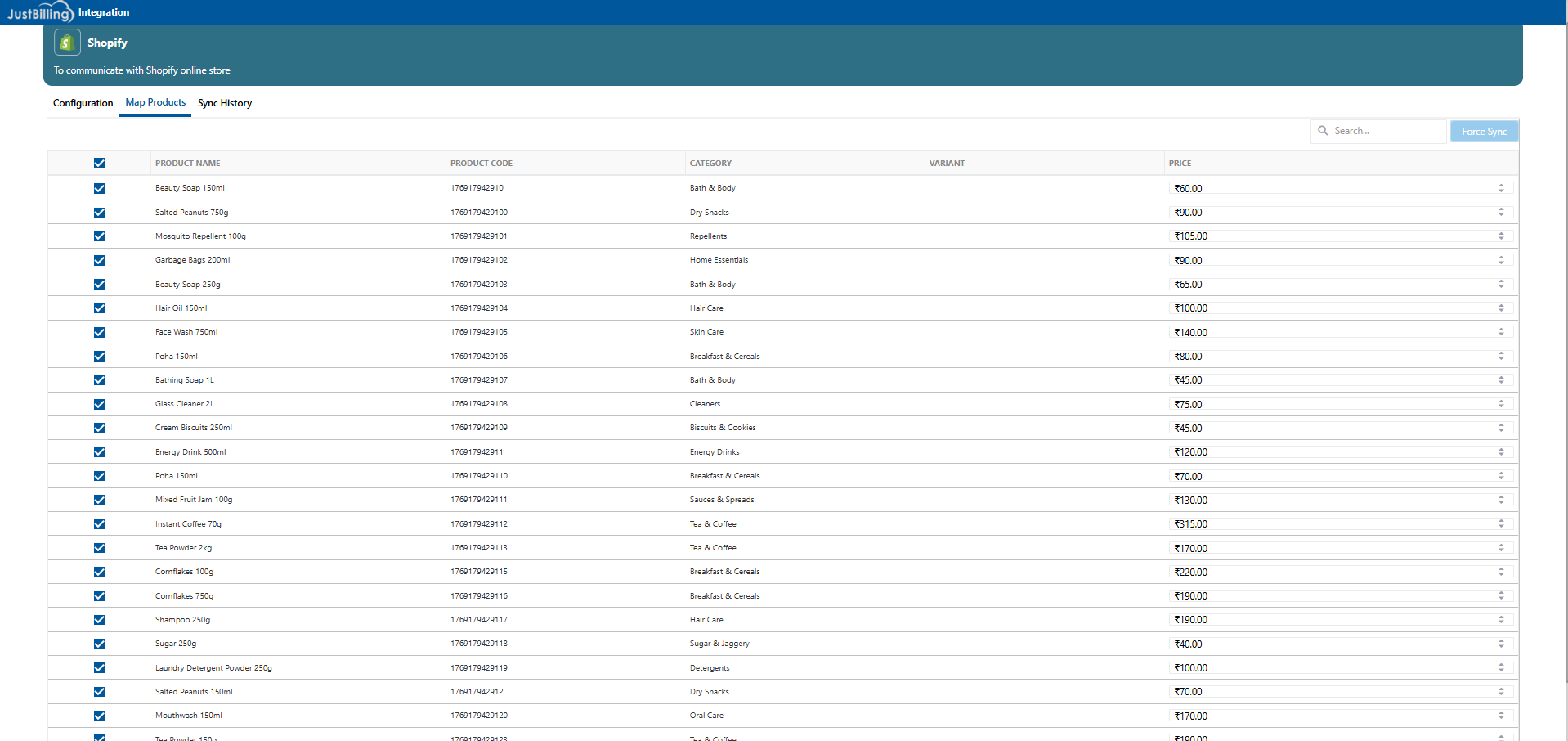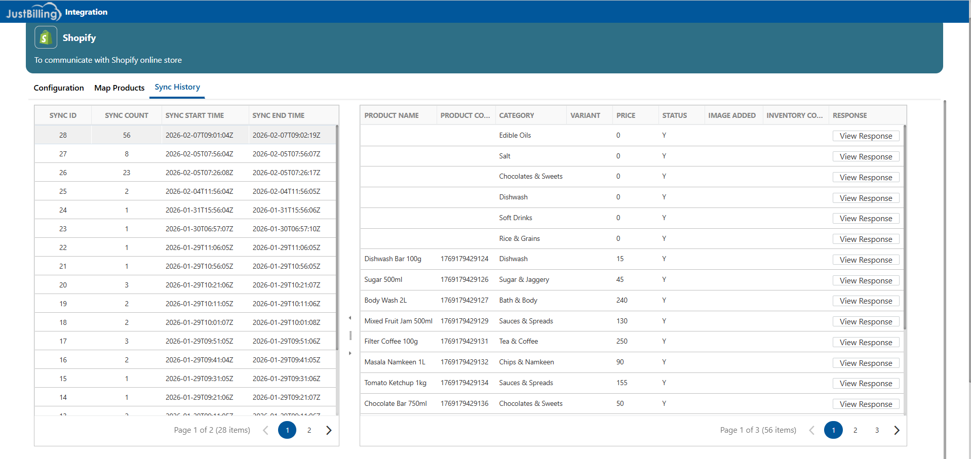 The Shopify Integration module enables seamless communication between JustBilling and a Shopify online store. This integration allows businesses to: