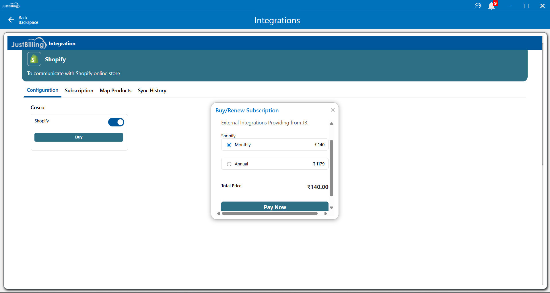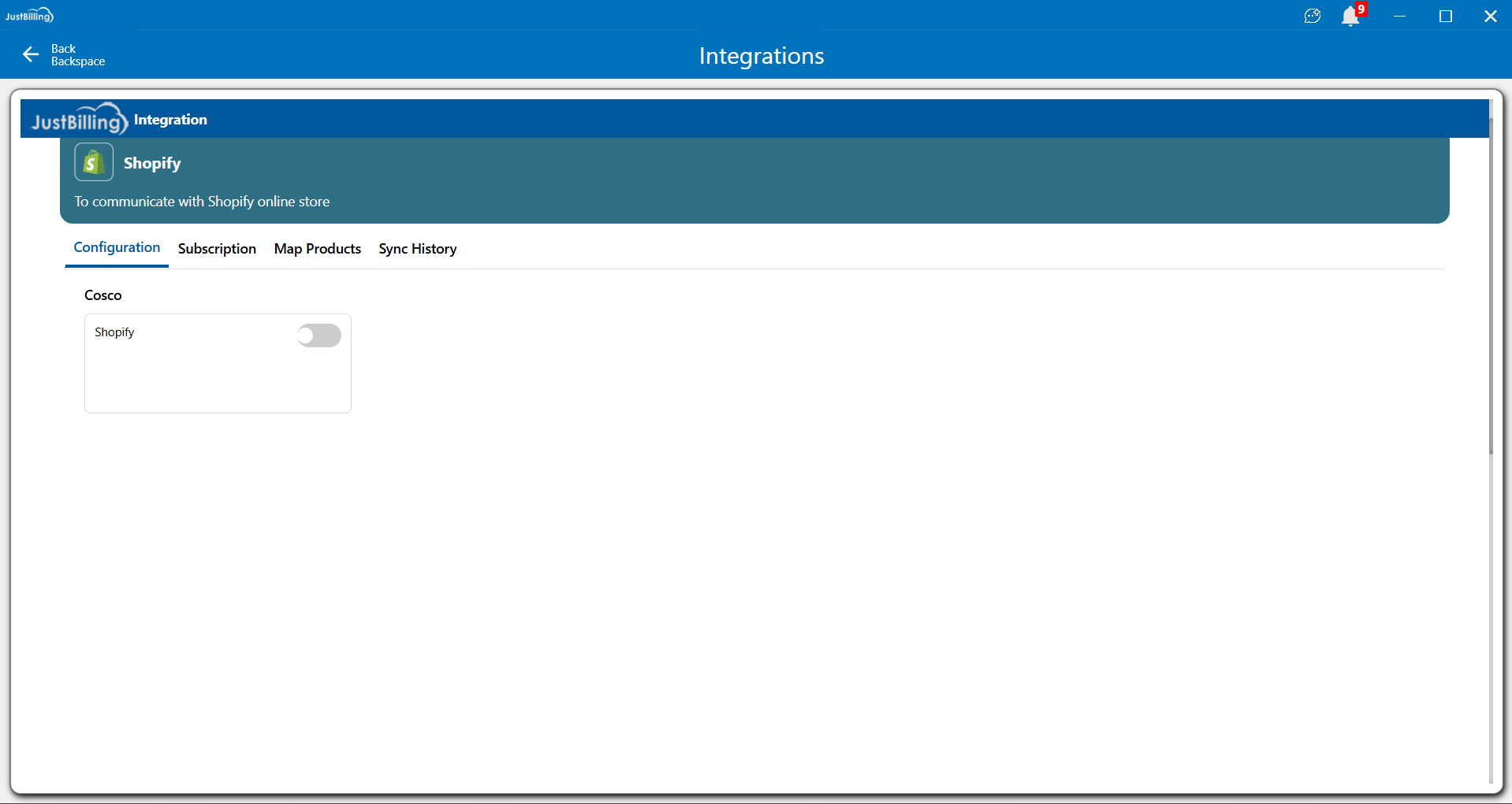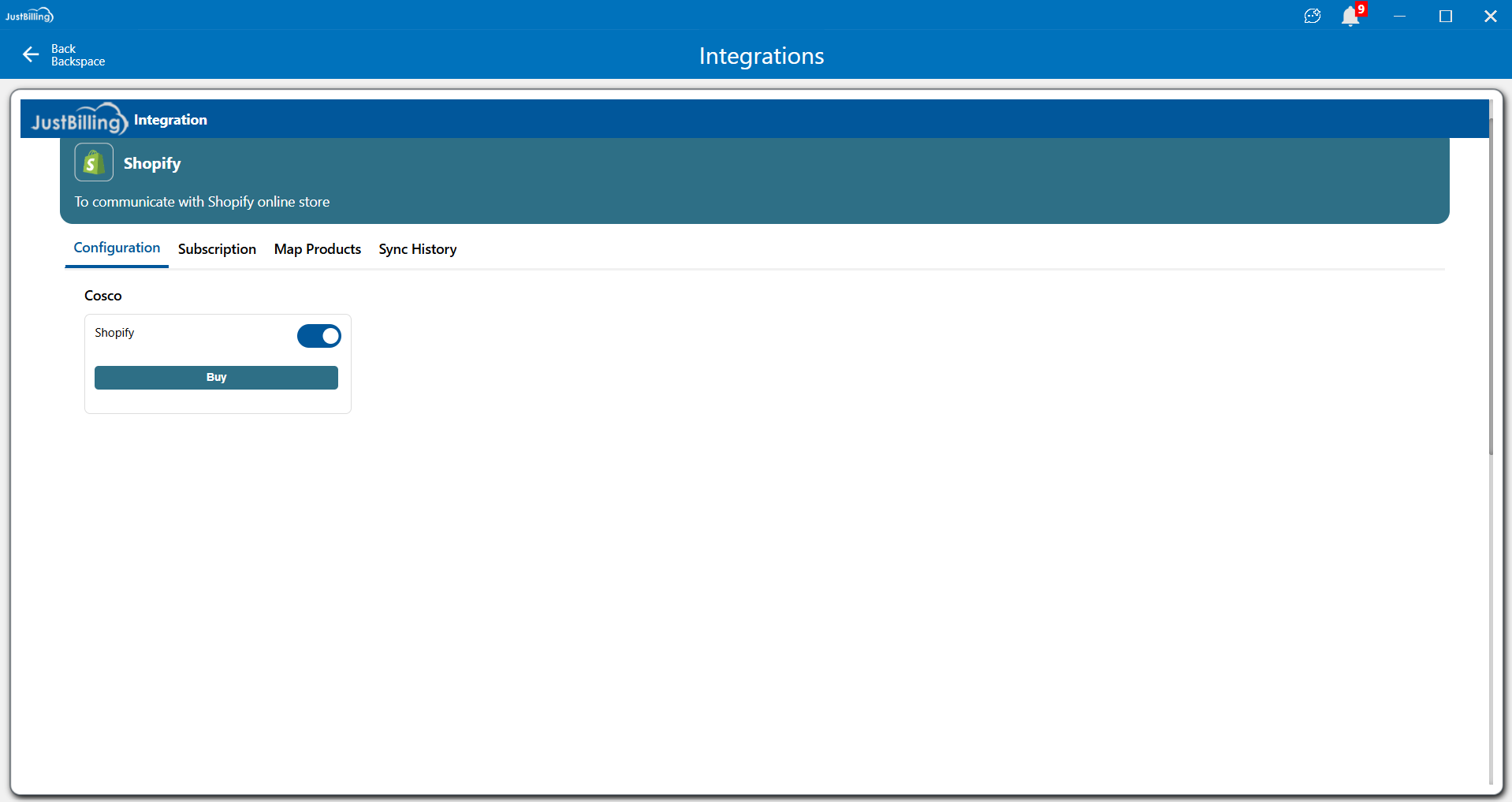 The Shopify Integration in JustBilling allows the business to connect its JB product catalog, pricing, and inventory with a Shopify online store. This synchronization helps in managing products efficiently from a single platform.