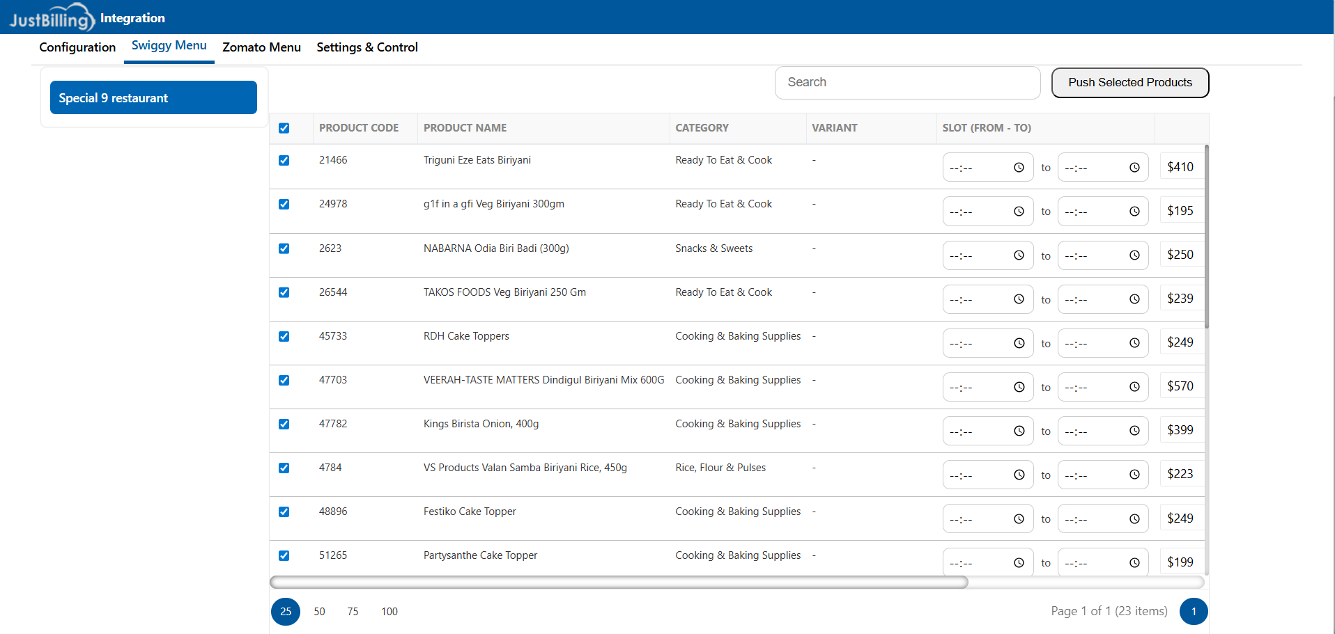 - Map POS menu items to aggregators and push menus with pricing, availability, and time slots.