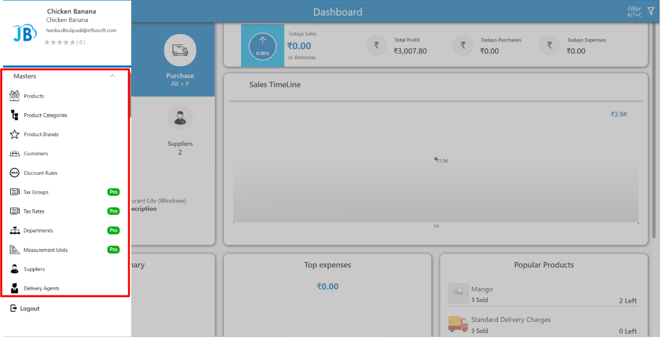 In this topic we will briefly discuss about the sections that are available under Masters in the Just Billing software.