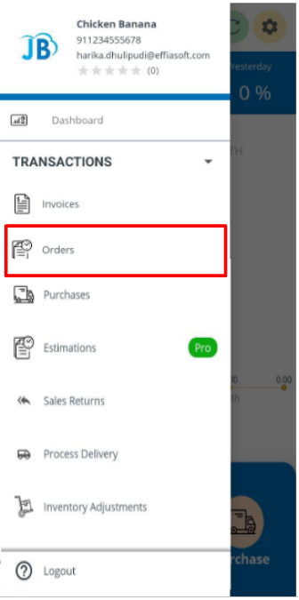 from top left and navigate to Orders screen, you can generate orders for the products/services you sell.