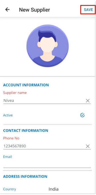 - Phone No., Email ID, Initial Outstanding, VAT Number, GSTIN Number, Area, Address, Pin code