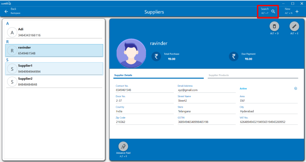 Note: Suppliers page added from Just billing application will get synced to JB cloud Back office by Auto Sync.