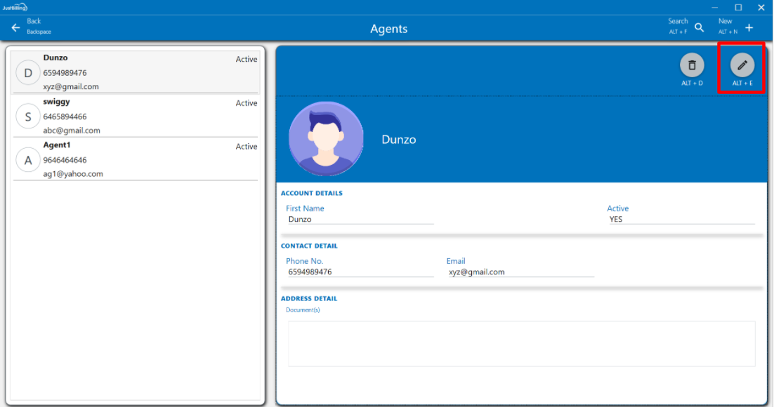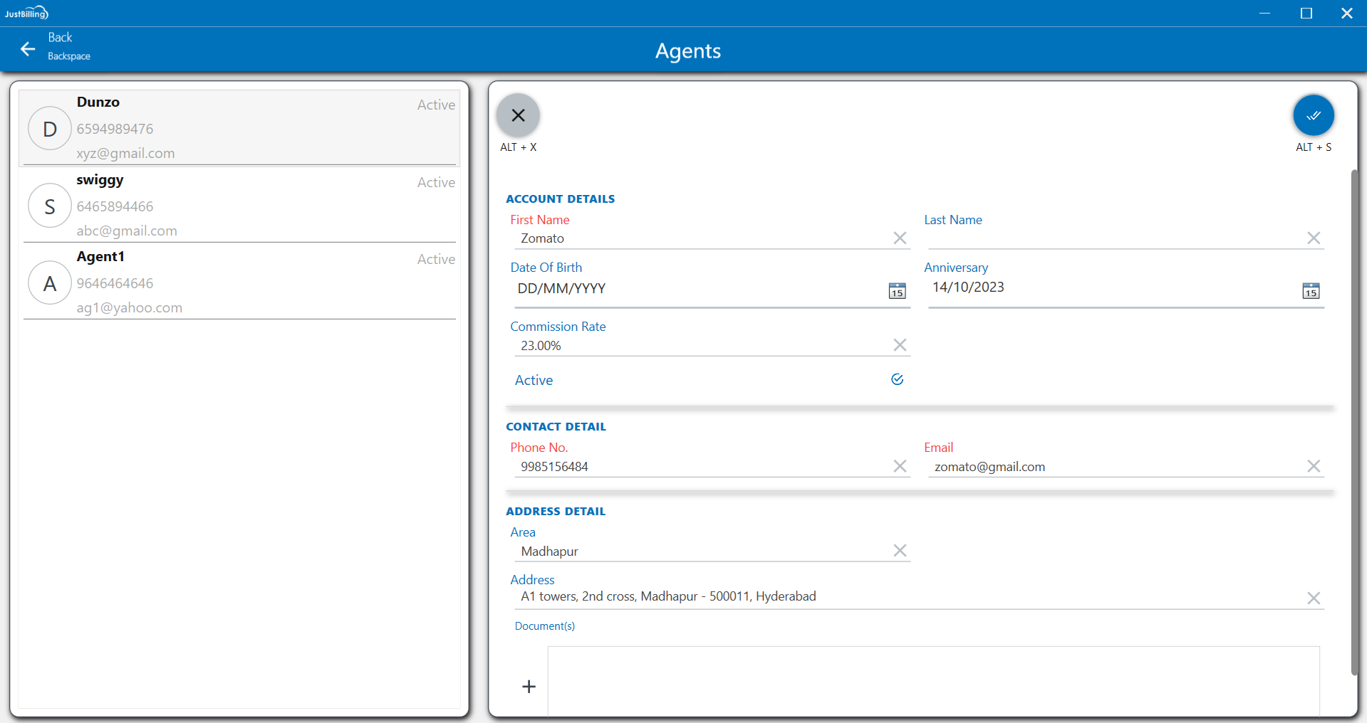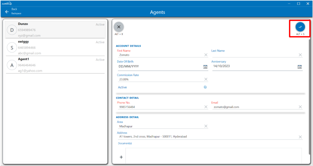 Note: Agents page added from Just billing application will get synced to JB cloud Back office by Auto Sync.
