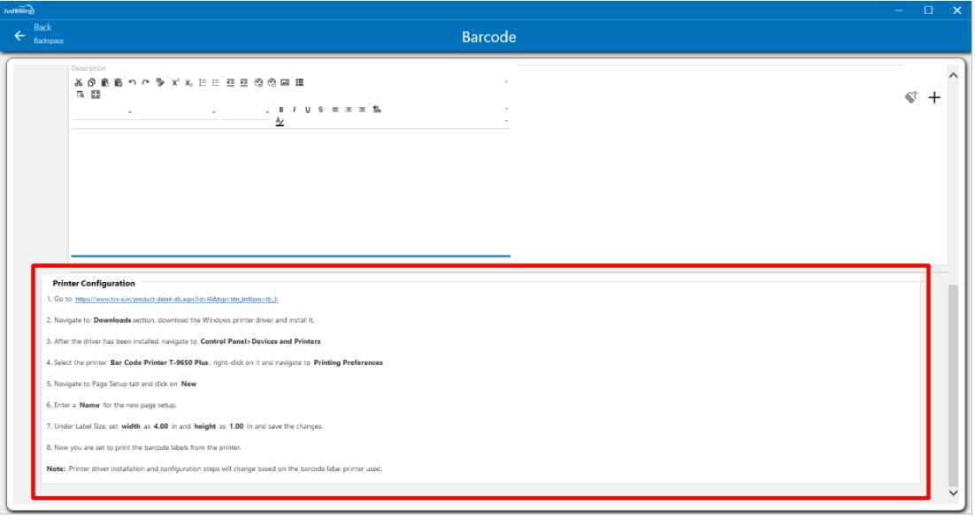 Note: Printer driver installation and configuration steps will change based on the barcode label printer used.