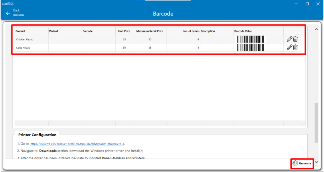 9. If the preview is okay then you can generate barcode by clicking on generate.