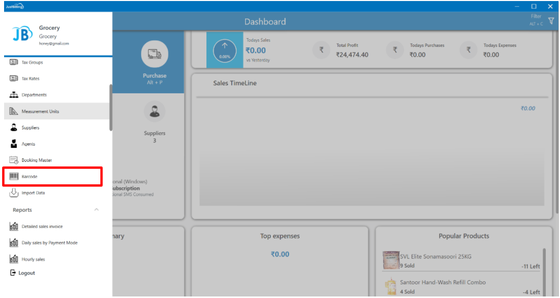 To create a new Barcode for a product, you need to log into Just Billing Application in your desktop.