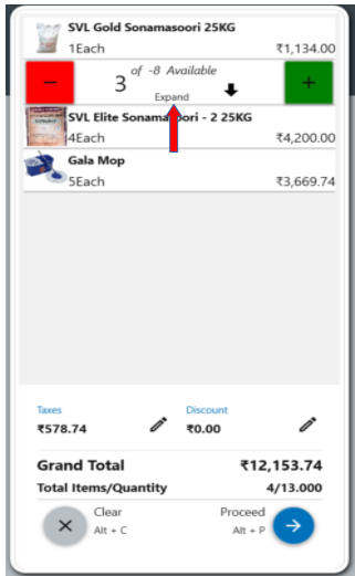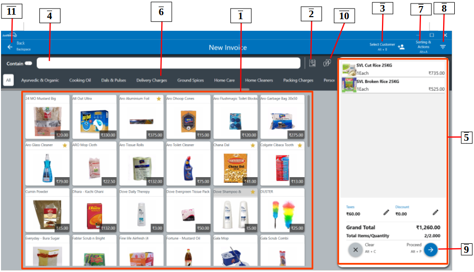 4. You can search for a particular item item from the search bar. Type the item name in the search box to view the items in the product pane.
